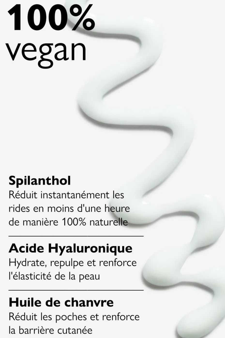 Lisse le contour de l’œil en décrispant immédiatement les rides et en nourrissant l’épiderme en profondeur.