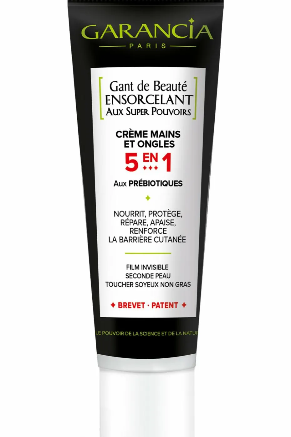 Le [ Gant de Beauté Ensorcelant Aux Supers Pouvoirs ] est une crème mains et ongles 5 en 1 aux prébiotiques qui nourrit, protège, répare, apaise et renforce la barrière cutanée des peaux sèches et/ou fines du dos de la main.