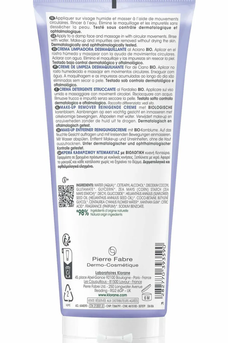 La crème nettoyante démaquillante au Bleuet BIO : le nouveau geste pour un démaquillage doux et efficace. Composée de 98% d’ingrédients d’origine naturelle, cette crème formulée sans savon et avec PH physiologique, nettoie et démaquille le visage et les yeux sans dessécher la peau. L’association de 3 tensioactifs doux permet d’obtenir une mousse légère au contact de l’eau.