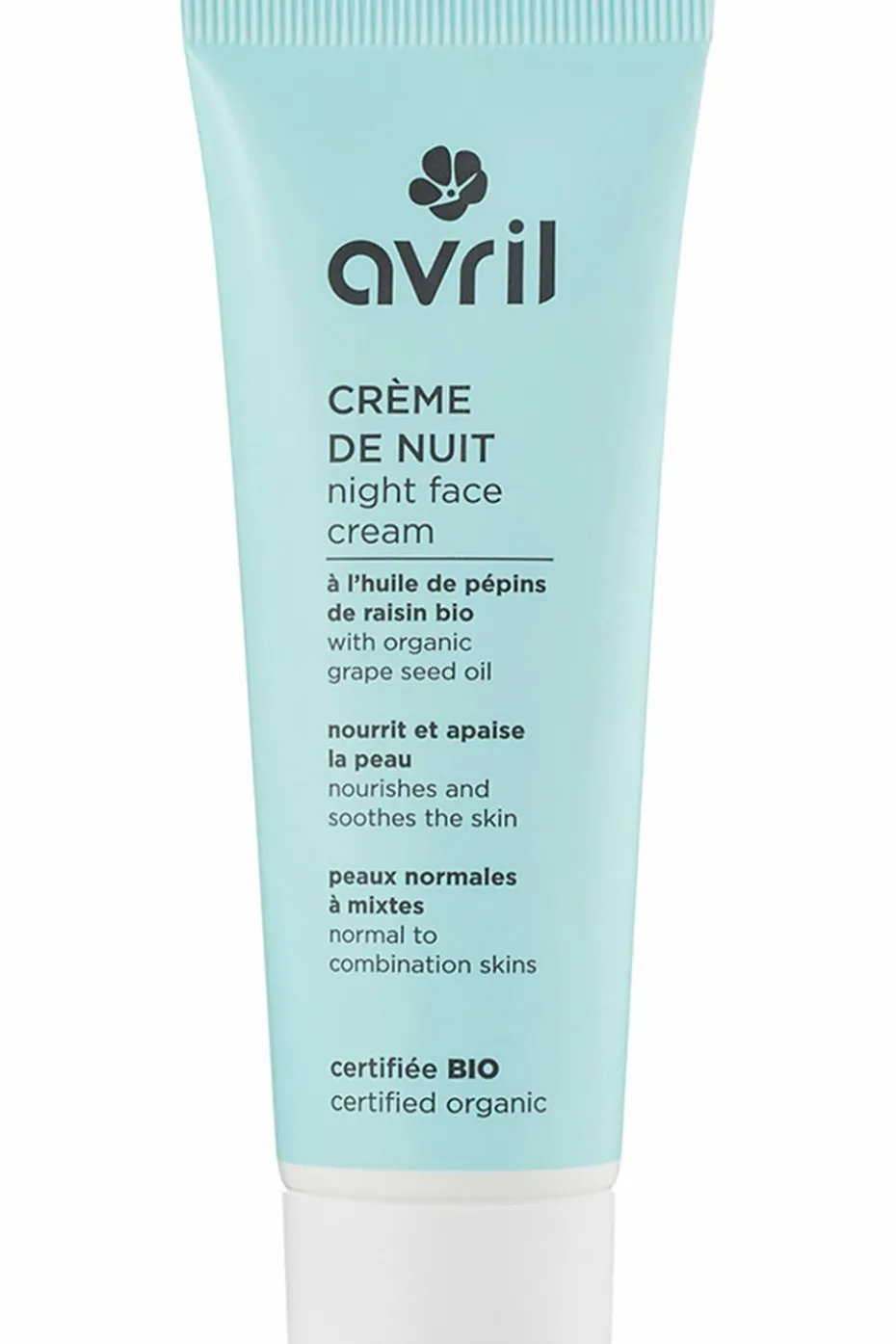 La crème de nuit Avril contient de l’huile d’amande douce et de pépins de raisin bio. L’extrait de lys bio lui confère son odeur fraîche et subtile.