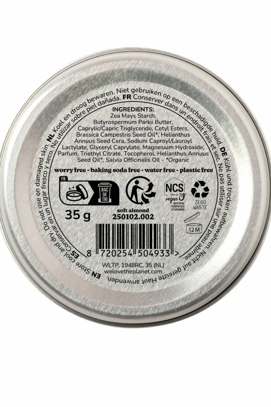 Ce déodorant 100% naturel et hypoallergénique certifié NCS a un doux parfum d’amande.