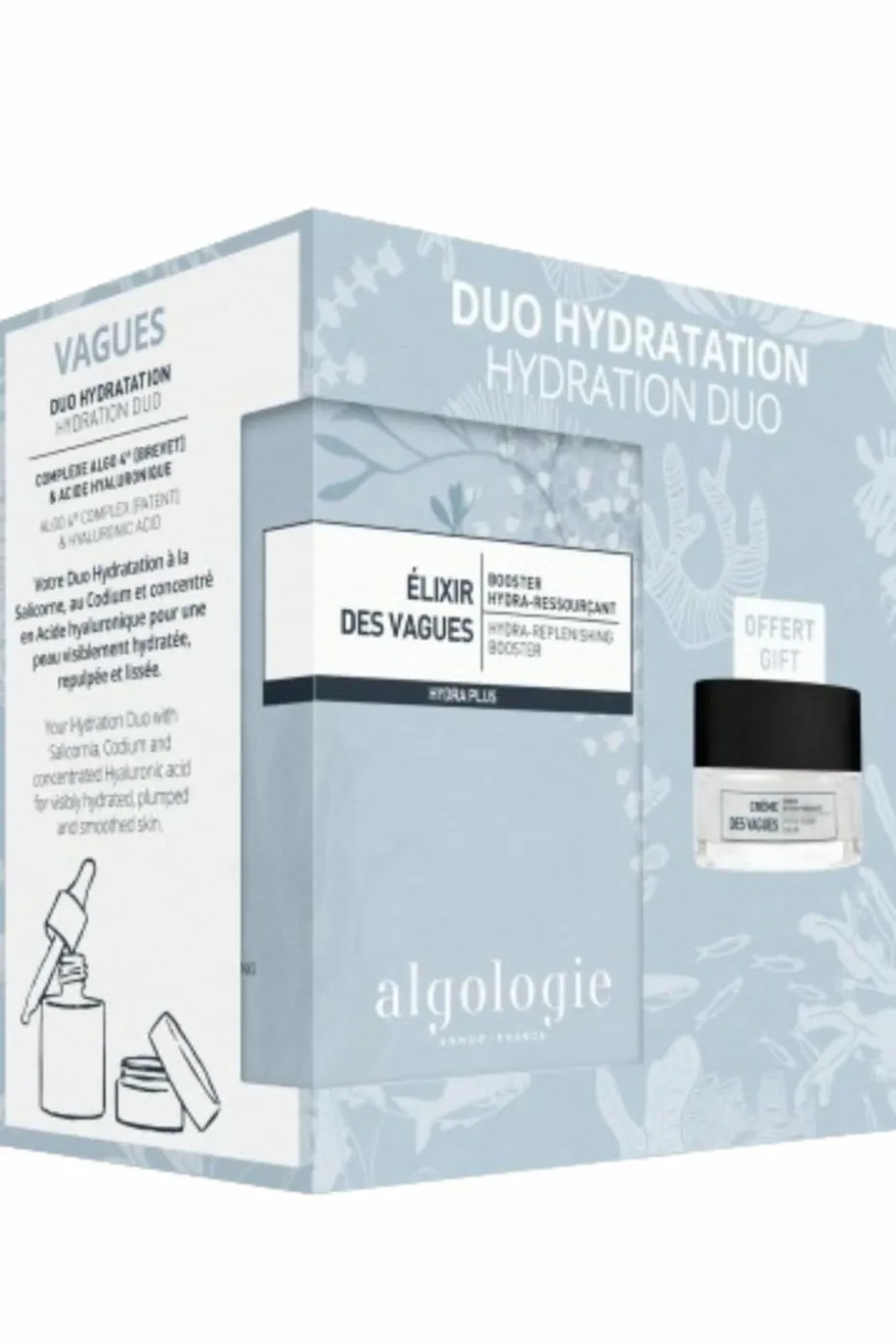 Apportez à votre peau un soin marin d’exception avec votre duo Hydratation Algologie. Nés de l’inspiration du bord de mer de la Bretagne et de la richesse de sa biodiversité, les soins Algologie sont enrichis en actifs marins ultra-puissants pour des résultats visibles sur la peau.