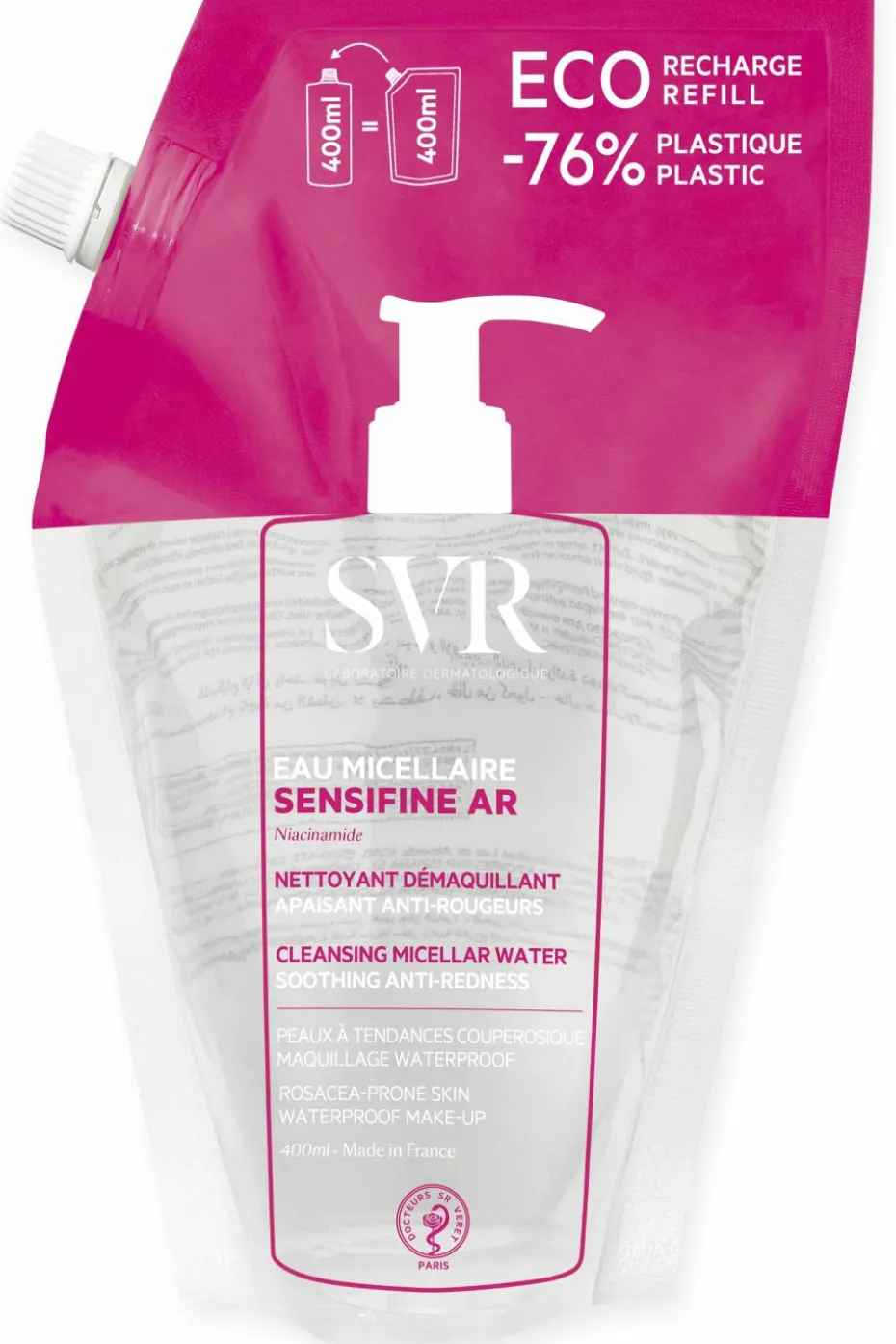 Imbiber généreusement un coton et laisser poser quelques secondes sur les zones sujettes aux rougeurs pour les rafraîchir. Puis lisser délicatement pour retirer maquillage et impuretés. SENSIFINE AR Eau micellaire démaquille aussi bien le visage que les yeux et les lèvres.