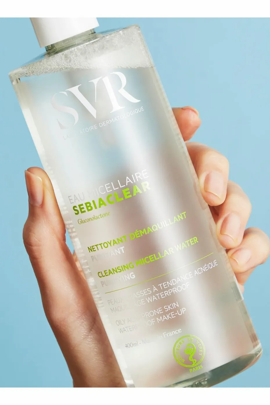 L’Eau Micellaire SebiaClear purifie, nettoie et démaquille en un seul geste, même le maquillage waterproof. Adaptée aux peaux sensibles, elle aide à éliminer les impuretés et à se débarrasser de l’excès de sébum en douceur sans dessécher pour laisser la peau nette et fraîche.
