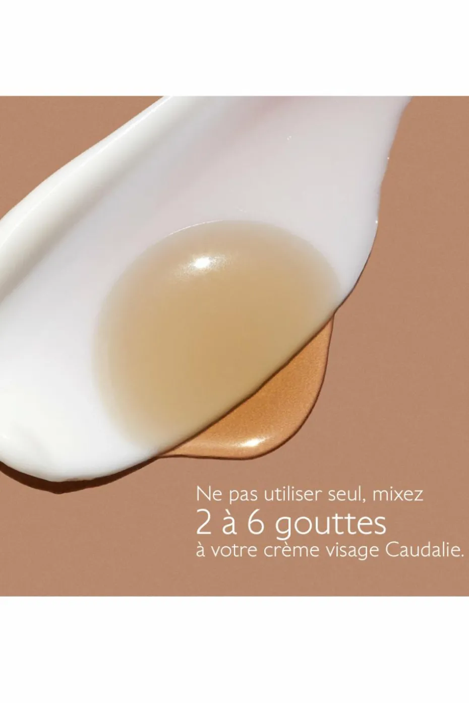 Les Gouttes Solaires Autobronzantes se mixent à votre crème visage Caudalie pour un bronzage progressif, lumineux et sur-mesure toute l’année.