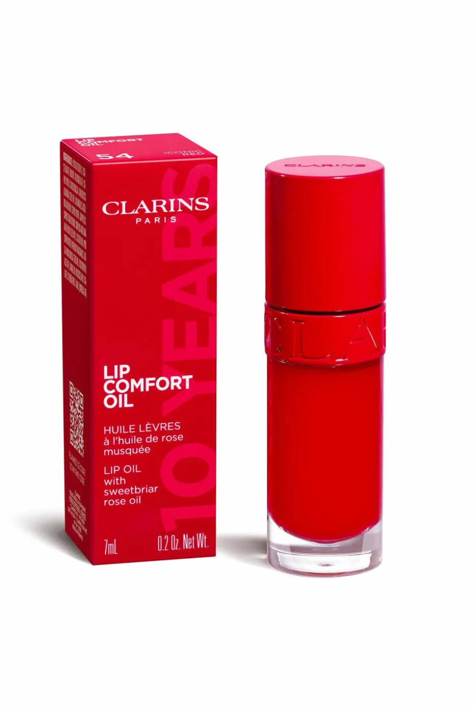 Pour célébrer ses 10 ans, Lip Comfort Oil se réinvente en édition limitée. Un rouge signature Clarins, dans la teinte « 54 Iconic Red » en hommage à la date de création de la marque. Pour l’occasion, elle arbore un look flamboyant, du flacon jusqu’au capot.