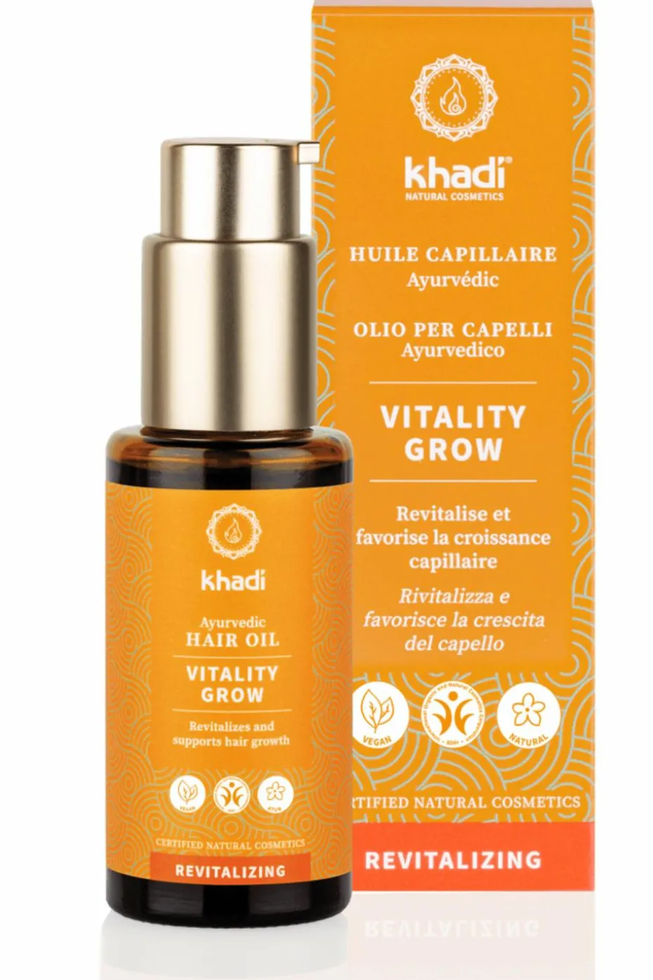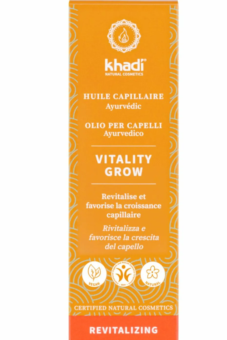 L’Huile pour cheveux et cuir chevelu khadi Vitality Grow – une vitalité accrue, un cuir chevelu revigoré et des cheveux épais.