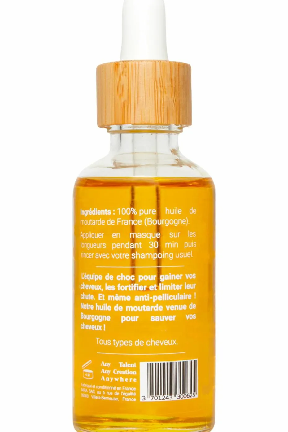 Pour les cheveux, appliquez Inglourious Mustards – notre huile de moutarde pure – en masque une à deux fois par semaine sur les longueurs et les pointes, laisser poser minimum une heure et faites votre shampoing habituel !