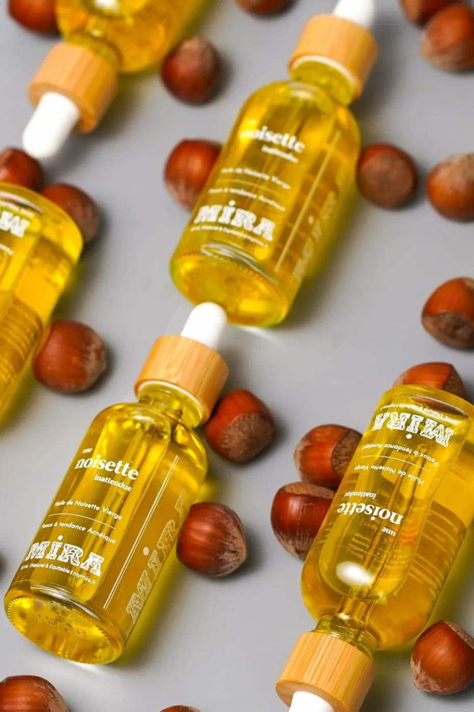 « Une noisette inattendue », c’est notre huile végétale de noisette pure, obtenue par pression à froid.