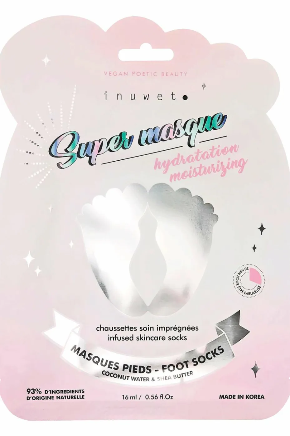 Notre masque pieds en forme de chaussettes est imprégné d’actifs hydratants et de vitamines pour apporter un soin ciblé, totalement adapté aux pieds.