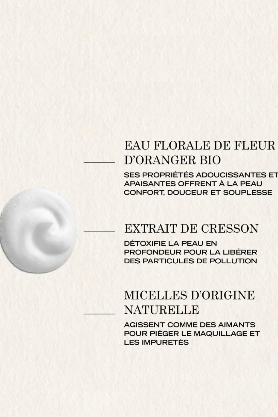 Formulée avec de l’eau florale de fleur d’oranger BIO et de l’extrait de cresson, sa mousse onctueuse est respectueuse des peux sensibles et rend la peau toute douce !