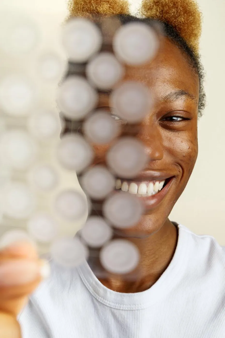 3. Appliquer soigneusement le patch sur ton bouton à l’aide de mains propres.