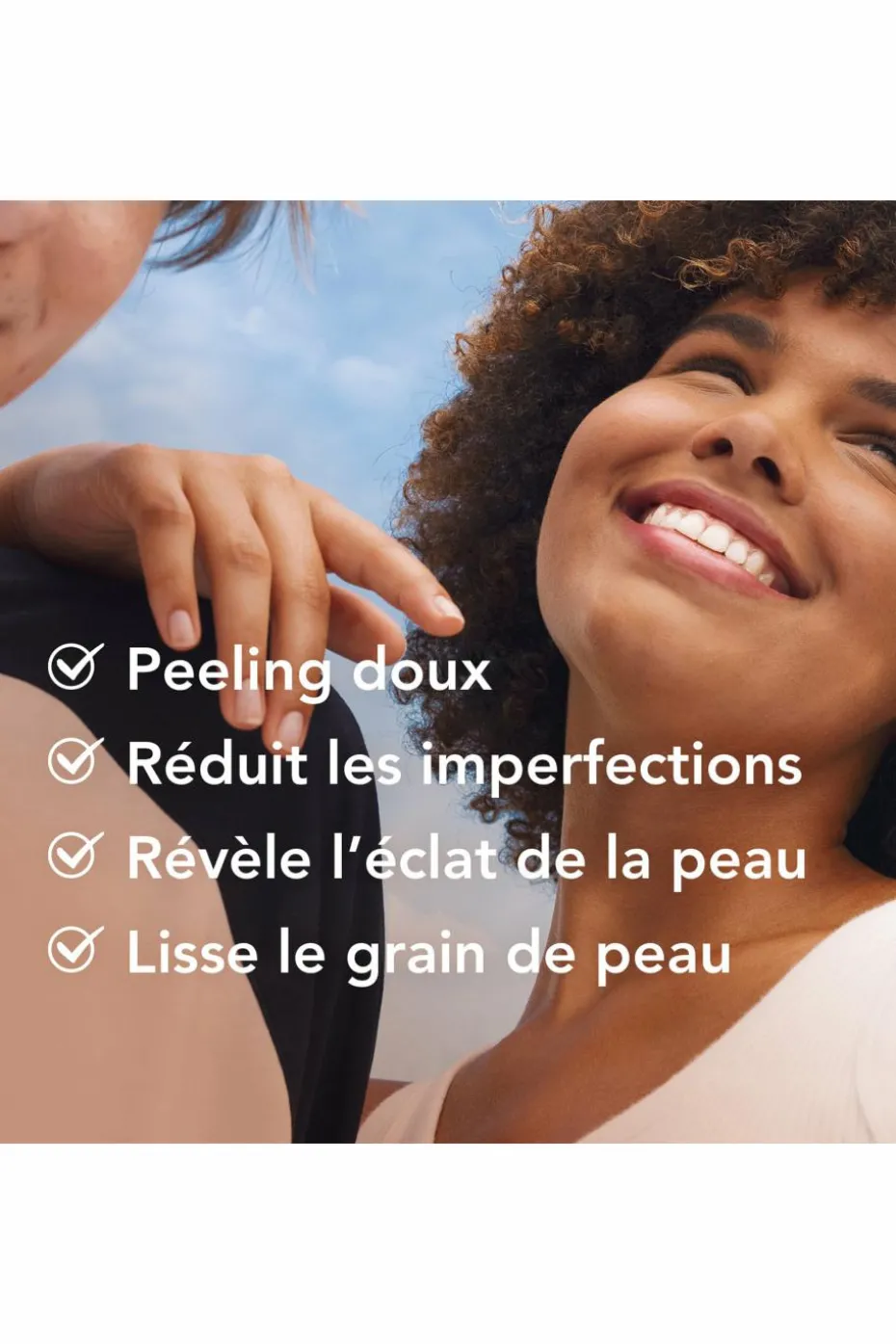 Ce soin peeling doux lisse le grain de la peau et révèle son éclat naturel.