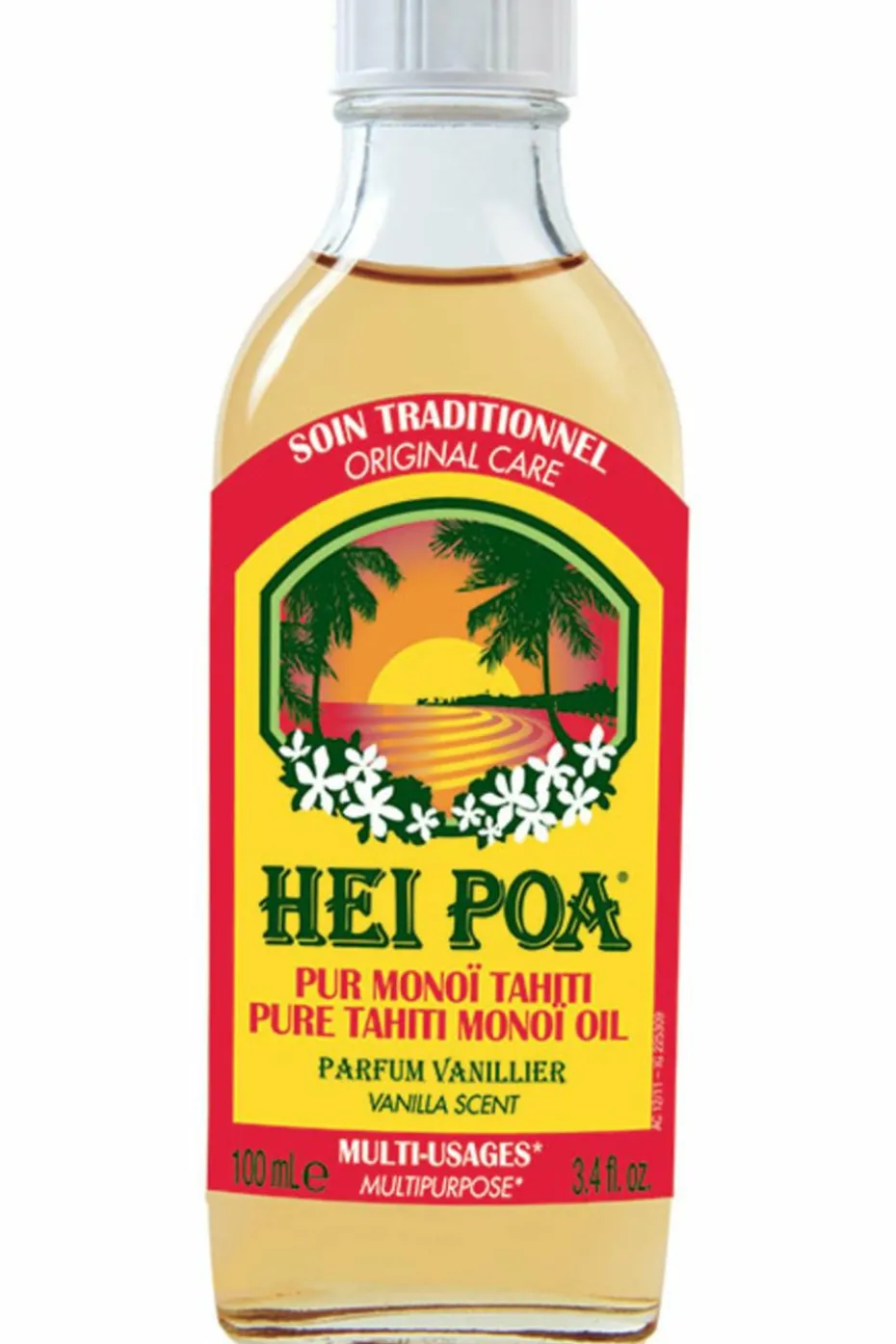Parce que depuis les années 1970, le monoï Hei Poa n’a pas perdu son statut de produit culte. De l’extrait de pulpe de noix de coco extrêmement riche en acide gras saturés, hydratant et réparateur. Et des fleurs de tiaré macérées dont l’huile a des vertus apaisantes. On aime son odeur si caractéristique de l’été, ici la senteur de vanille parfumant l’huile aux fleurs de Tiaré, mais surtout son pouvoir nourrissant naturel, pour le corps comme pour les cheveux secs.