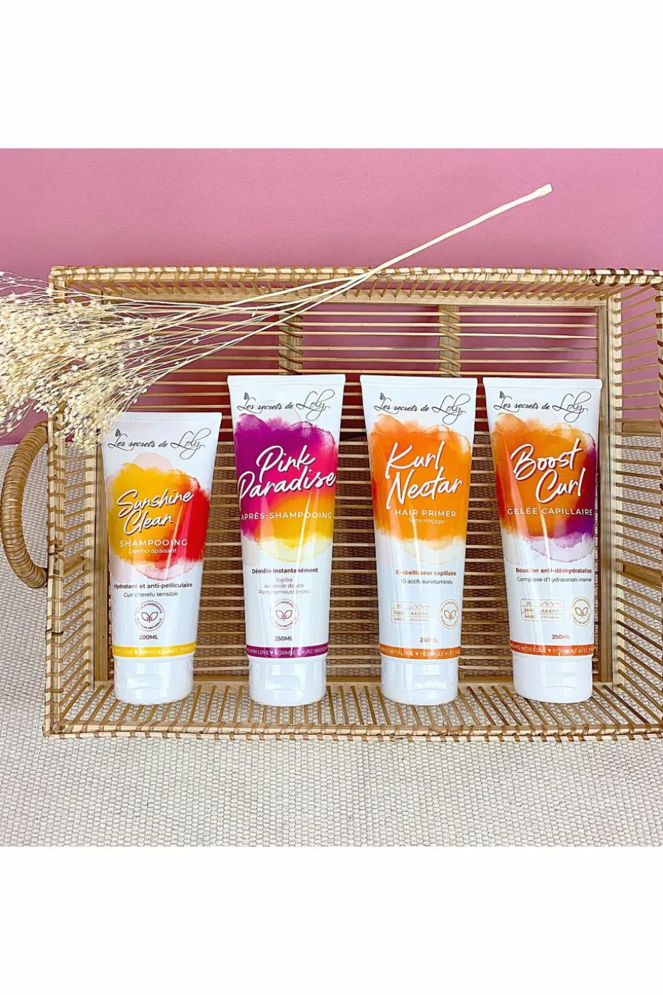 – Après-shampoing démêlant Pink Paradise 250ml (format vente) : enrichi en huiles végétales et essentielles rendra vos cheveux doux et soyeux. Vos longueurs seront ainsi plus faciles à coiffer. Particulièrement bien adapté pour les cheveux longs, bouclés, crépus et difficiles à démêler. Il contient une synergie d’huiles d’amande douce et de jojoba qui fortifie, adoucit et répare la fibre capillaire.