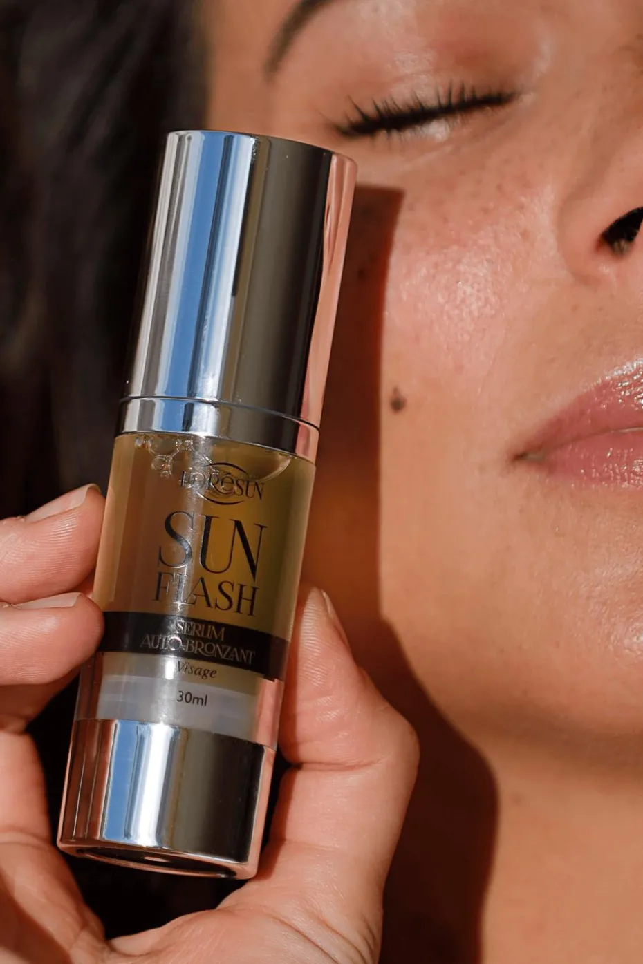 Le sérum auto-bronzant SUN FLASH a été conçu pour ajouter une action auto-bronzante aux soins visage habituels.