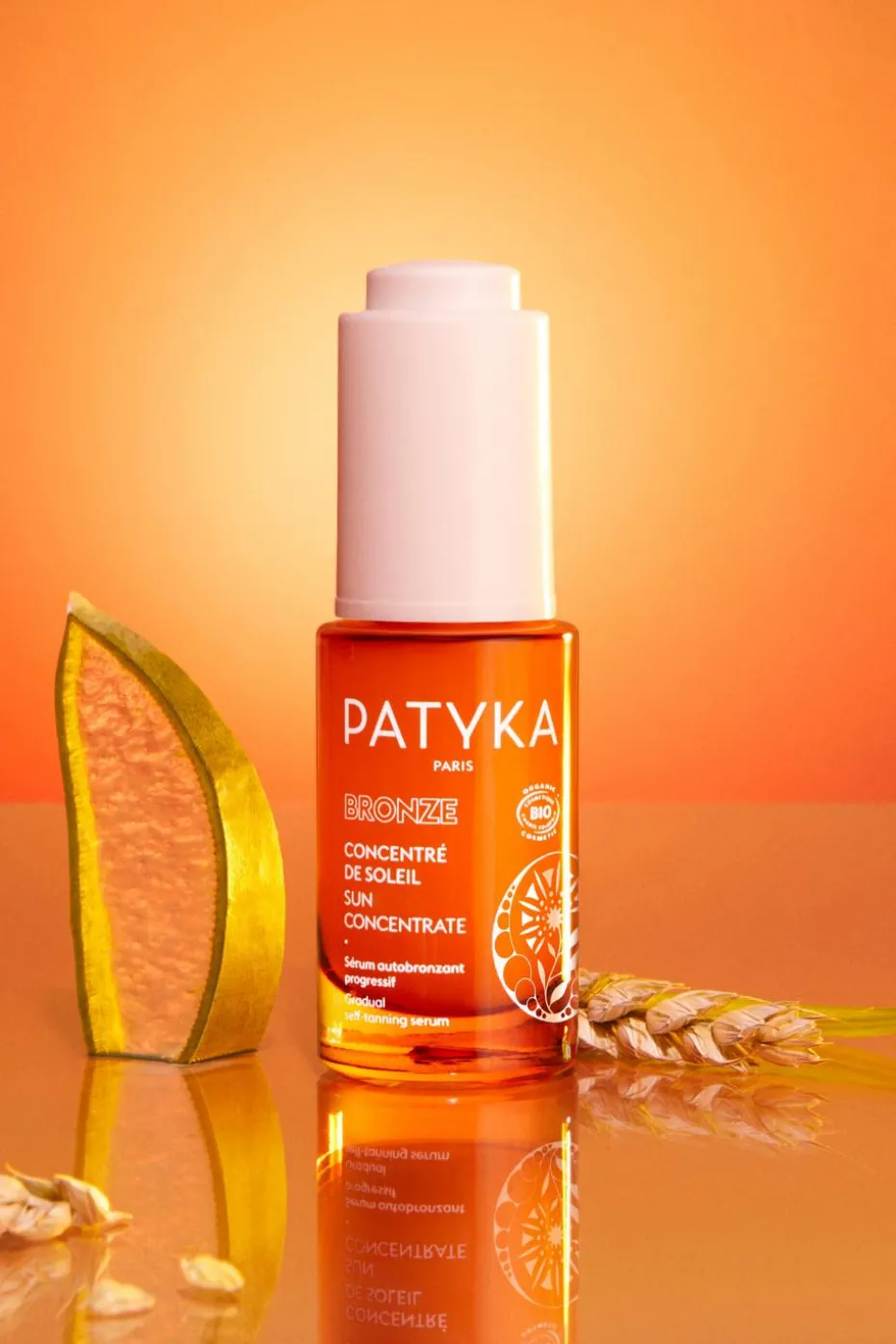 Véritable concentré de soleil, ce sérum autobronzant visage offre un teint hâlé naturel dès la première application. Sa texture gel-en-eau assure une application uniforme, à renouveler autant de fois que souhaité pour un bronzage sur-mesure et une peau dorée tout au long de l’année. Sa formule enrichie en Acide Hyaluronique et en extrait de Mélisse bio (efficacité anti-stress démontrée – brevet déposé PATYKA**) hydrate intensément la peau.