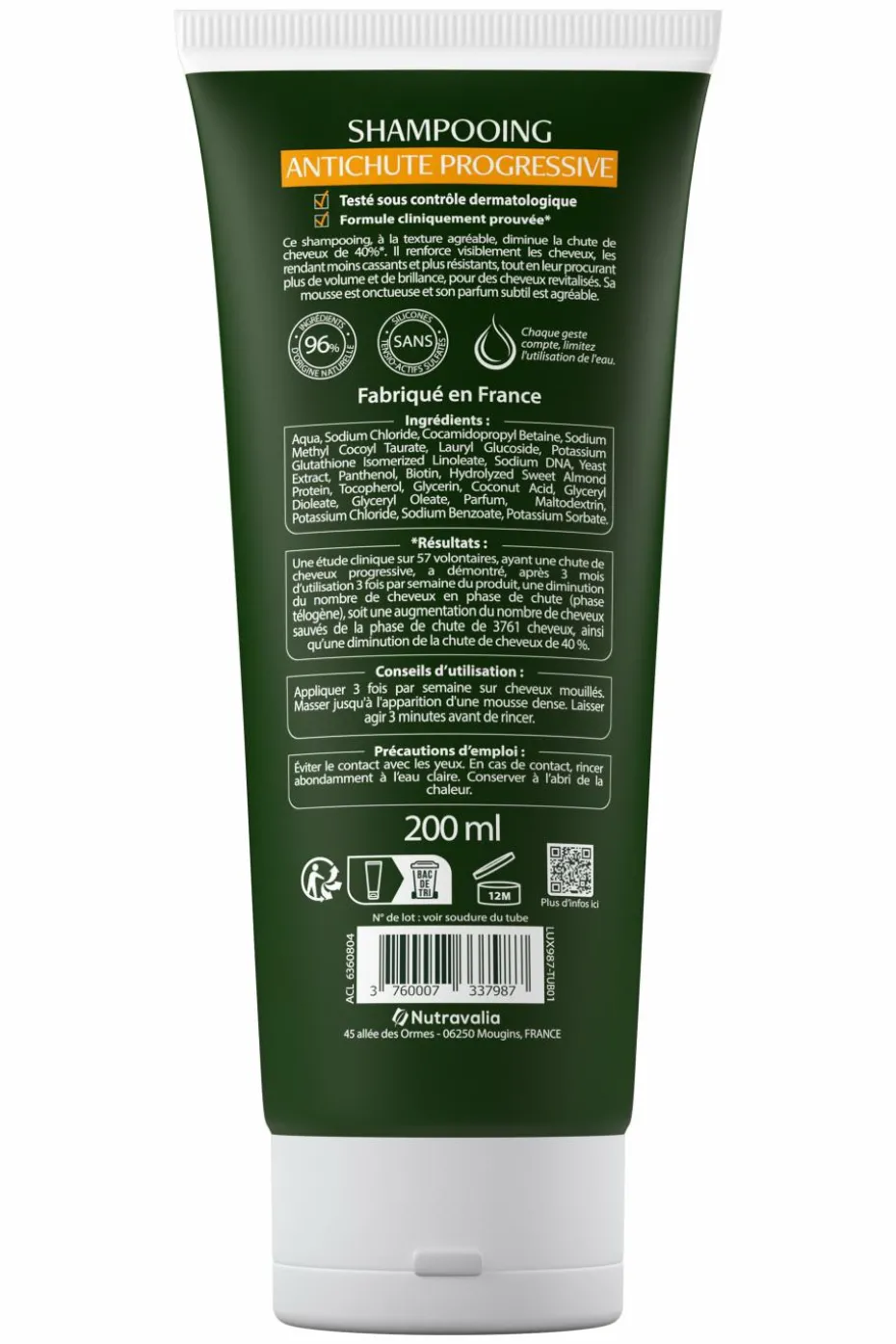 Conseils d’utilisation: Appliquer 3 fois par semaine sur cheveux mouillés. Masser jusqu’à l’apparition d’une mousse dense. Laisser agir 3 minutes avant de rincer.