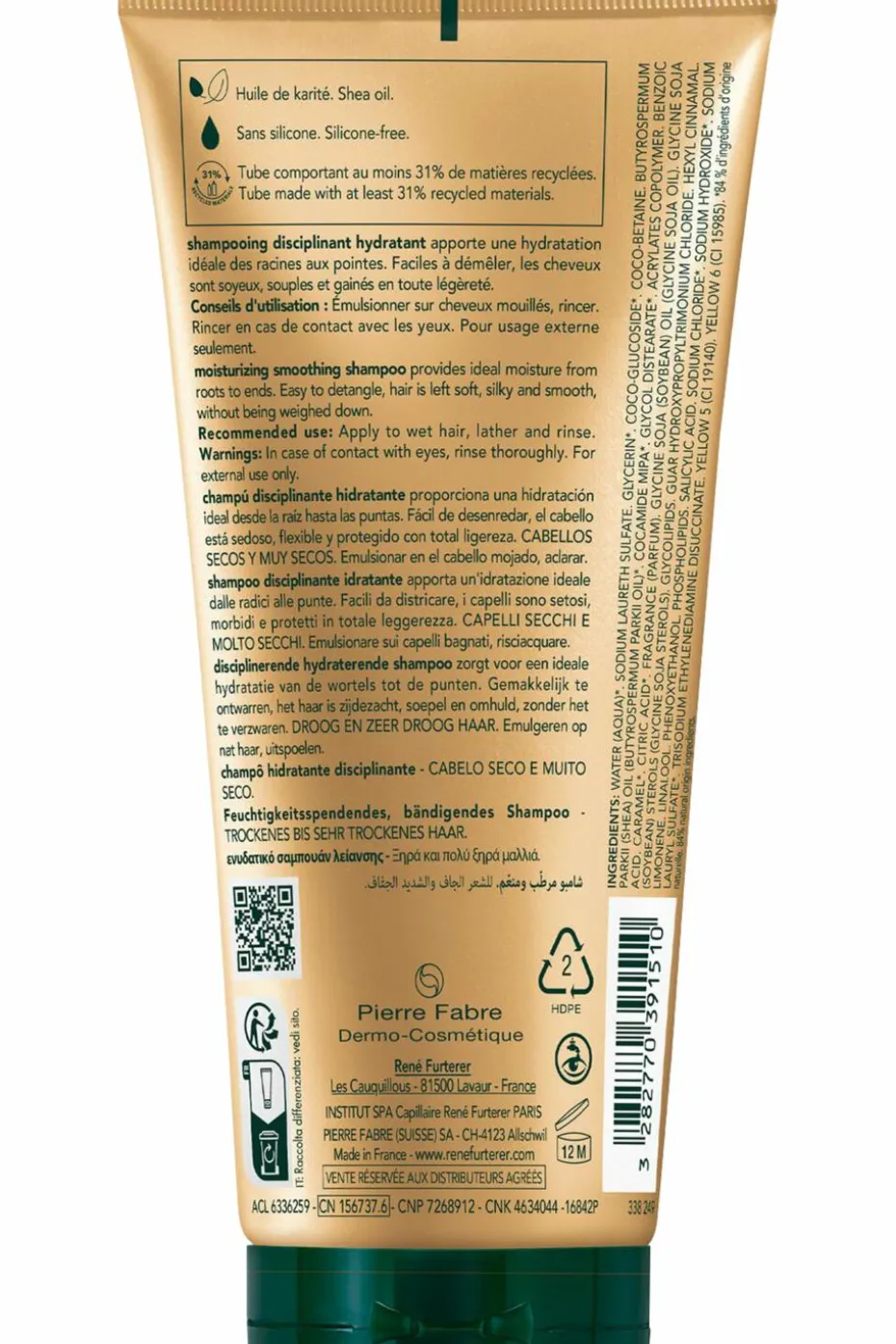 Le shampooing disciplinant hydratant apporte aux cheveux secs et très secs une hydratation idéale des racines aux pointes. Le film hydrolipidique est renforcé pour une protection optimale de la chevelure et du cuir chevelu. Sa formule sans silicone enveloppe la chevelure d’une mousse onctueuse au parfum délicat. Les cheveux secs et très secs sont désormais faciles à démêler, soyeux, souples et gainés en toute légèreté.