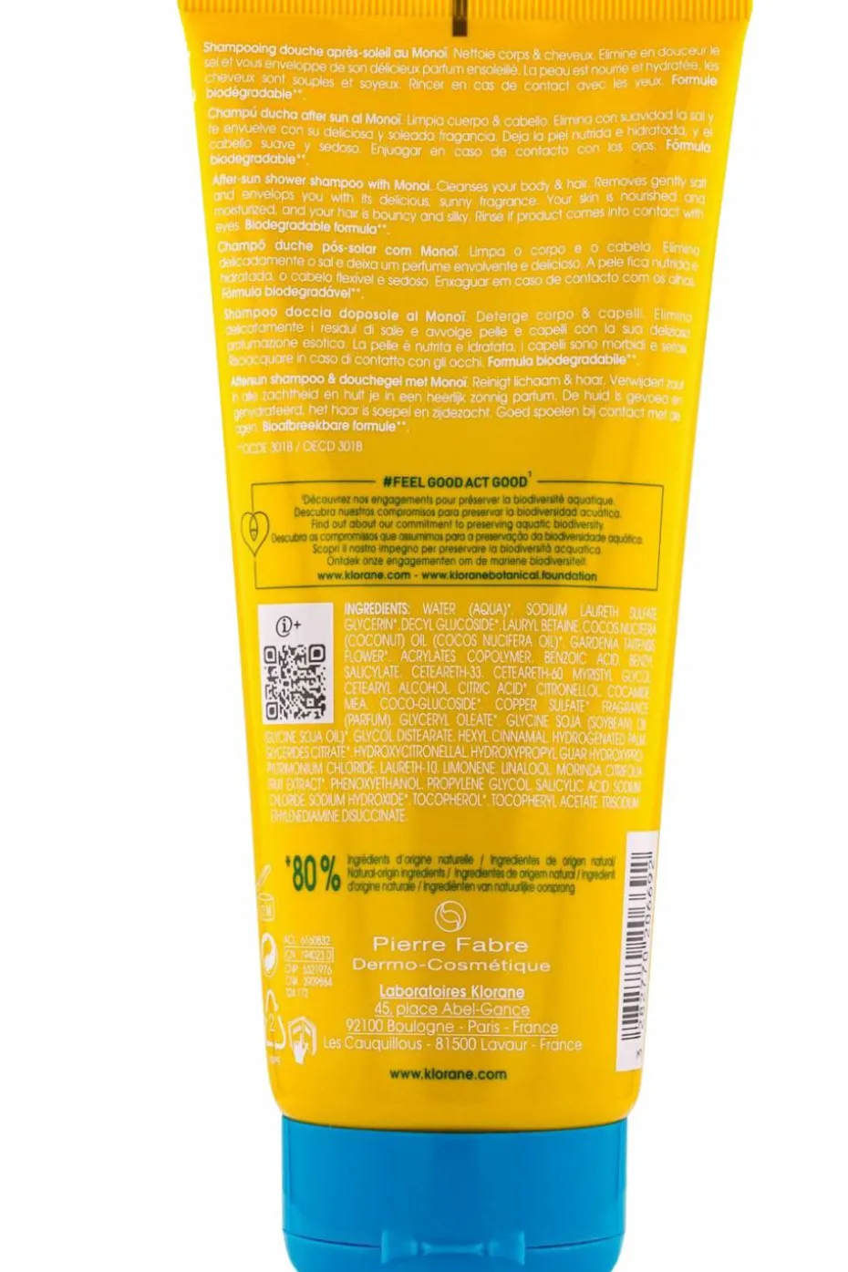 À la fois gel douche et shampoing après-soleil, ce 2-en-1 au Monoï nettoie et nourrit peau et cheveux.