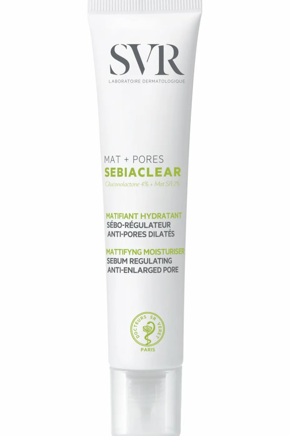 Sebiaclear Mat+Pores, soin correcteur anti-brillance: matifie et maintient l’hydratation. Enrichi en gluconolactone et acide salicylique, il purifie, lisse le grain de peau et réduit les imperfections. Les pores sont visiblement resserrés. Son complexe matifiant régule la production de sébum pour un fini mat, velouté. Excellente base de maquillage.