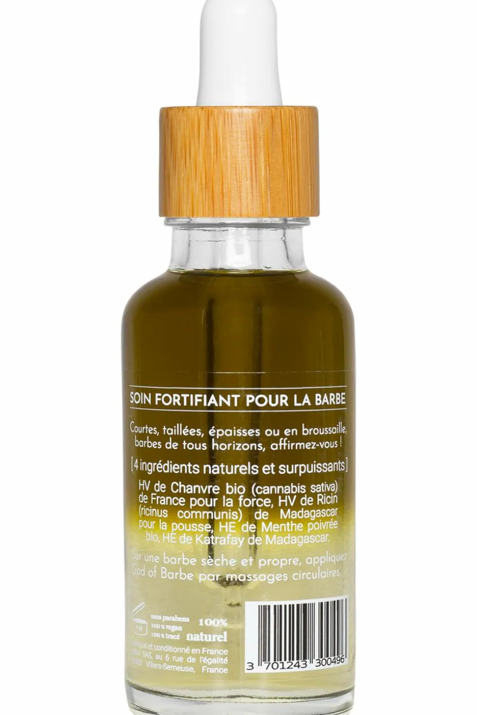 Sur une barbe sèche et propre, appliquez God of Barbe par massages circulaires en insistant sur les zones moins fournies. Notre soin composé de quatre ingrédients purs et bruts nourrit et donne force et vigueur à votre barbe.