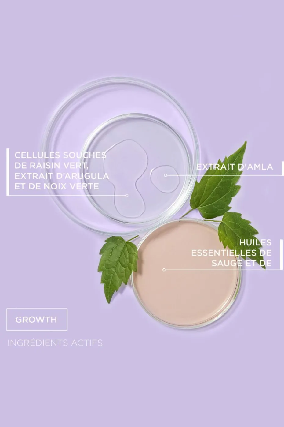 Riche en cellules souches de raisin vert, en extrait d’aragula, de noix verte et d’amla, et en huiles essentielles.