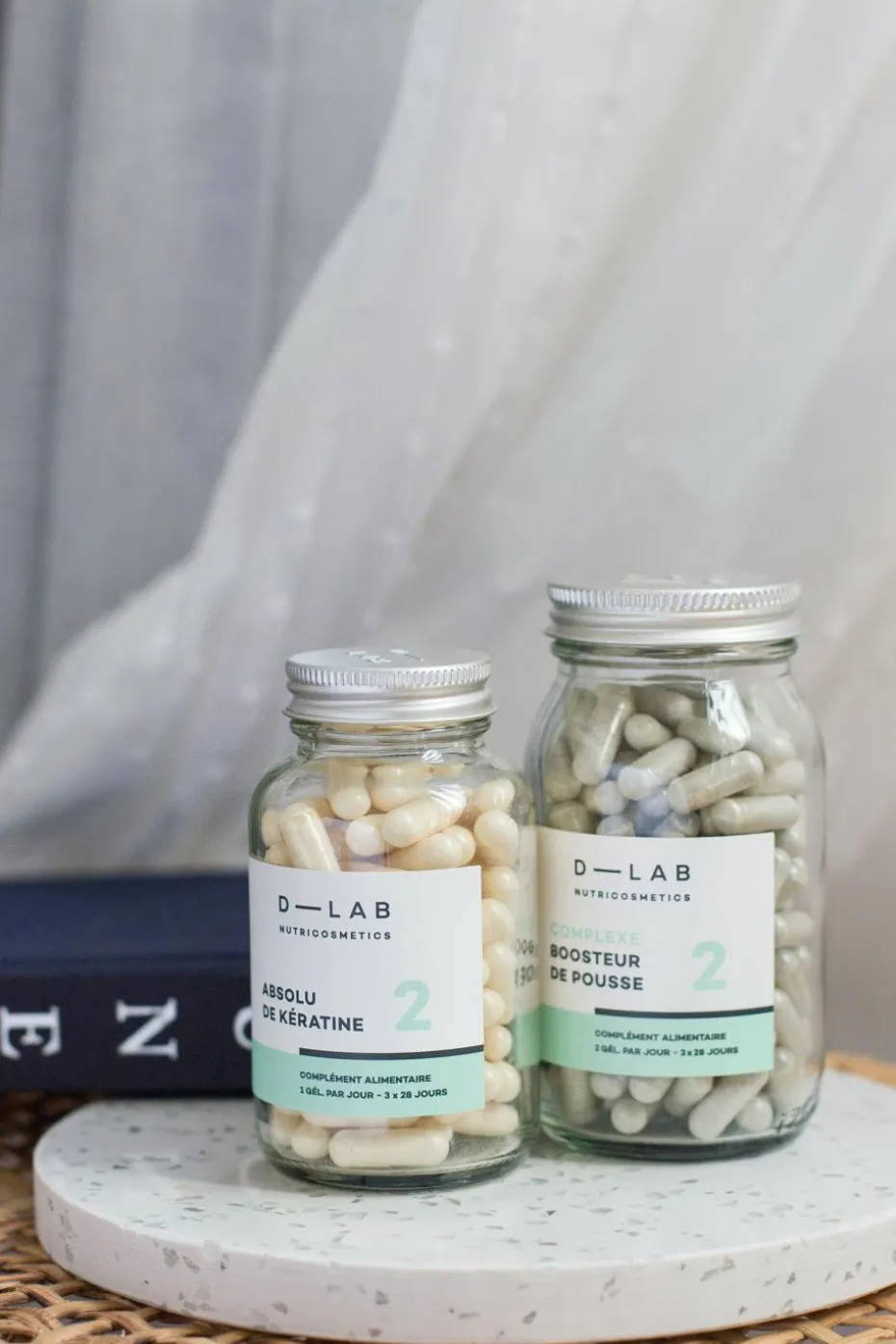 Seulement 1 gélule pour l’Absolu de Kératine et 2 gélules pour le Complexe de Pousse, à prendre quand vous voulez dans la journée.