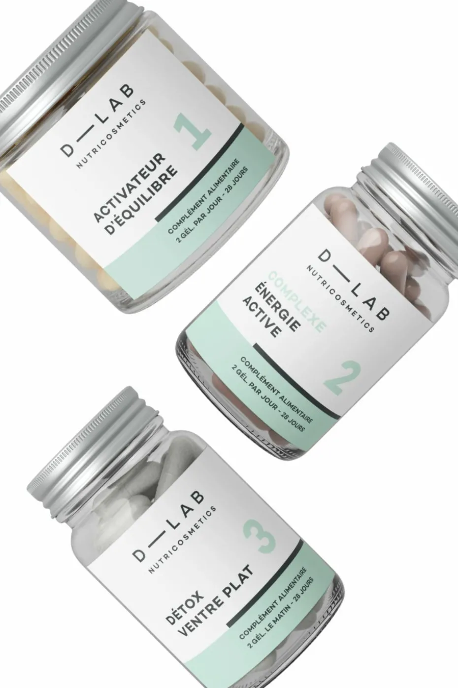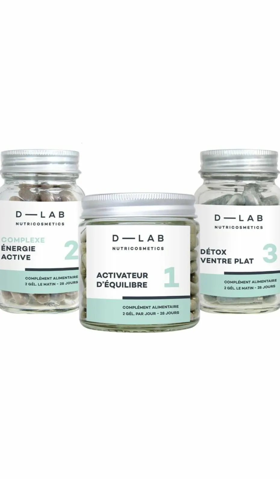 Ingrédients du Détox Ventre Plat (2 gél.) : • Poudre d’argile beige montmorillonite 150 mg • Gélule végétale (agent d’enrobage : hydroxypropylméthylcellulose, gélifiant : gomme gellane) • Extrait de fruit de fenouil – Foeniculum vulgare 100 mg (EPS** 400 mg) • Poudre de charbon actif végétal 100 mg • Mix de 5 ferments lactiques 60 mg (1 milliard UFC***) : Lactobacillus acidophilus BIO6307 (200 millions UFC***), Lactobacillus rhamnosus BIO6870 (200 millions UFC***), Lactobacillus casei BIO5773 (200 millions UFC***), Bifidobacterium bifidum BIO5480 (200 millions UFC***), Bifidobacterium animalis lactis BIO5764 (200 millions UFC***) • Poudre de fucus (poisson, mollusque, crustacé) – Fucus vesiculosus 60 mg • Poudre de thalle de lithothamne (poisson, mollusque, crustacé) – Lithothamnium calcareum 60 mg • Extrait de feuille de boldo – Peumus boldus 50 mg (EPS** 200 mg) • Sels thermaux de Vichy 40 mg • Farine de riz .