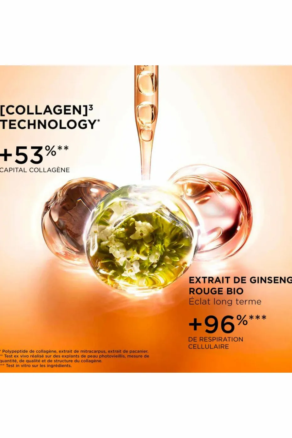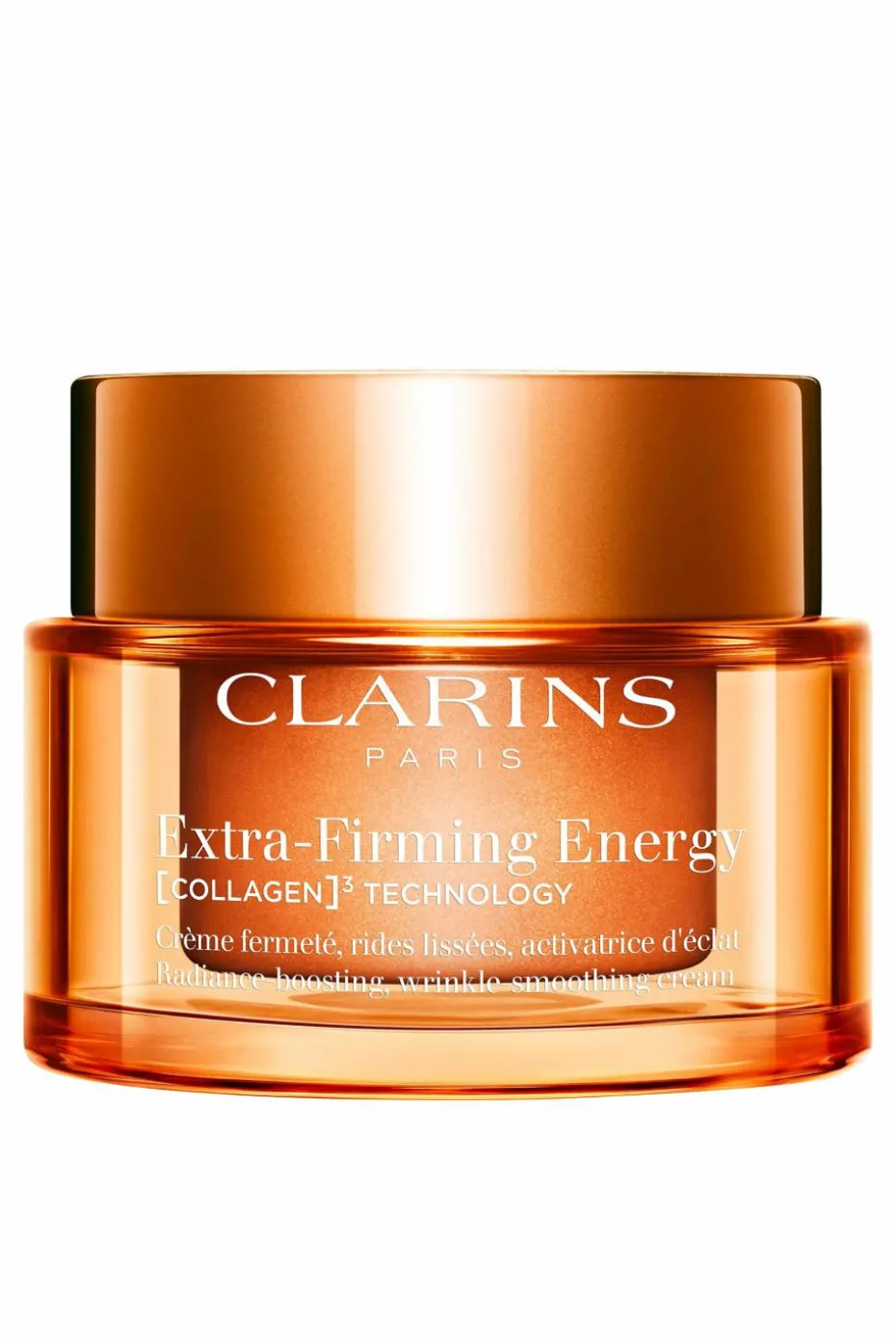 Pour améliorer la fermeté de la peau, Clarins a créé une technologie exclusive [COLLAGEN]³ TECHNOLOGY* qui associe 3 puissants actifs pro-collagène pour agir contre la perte de fermeté de la peau :