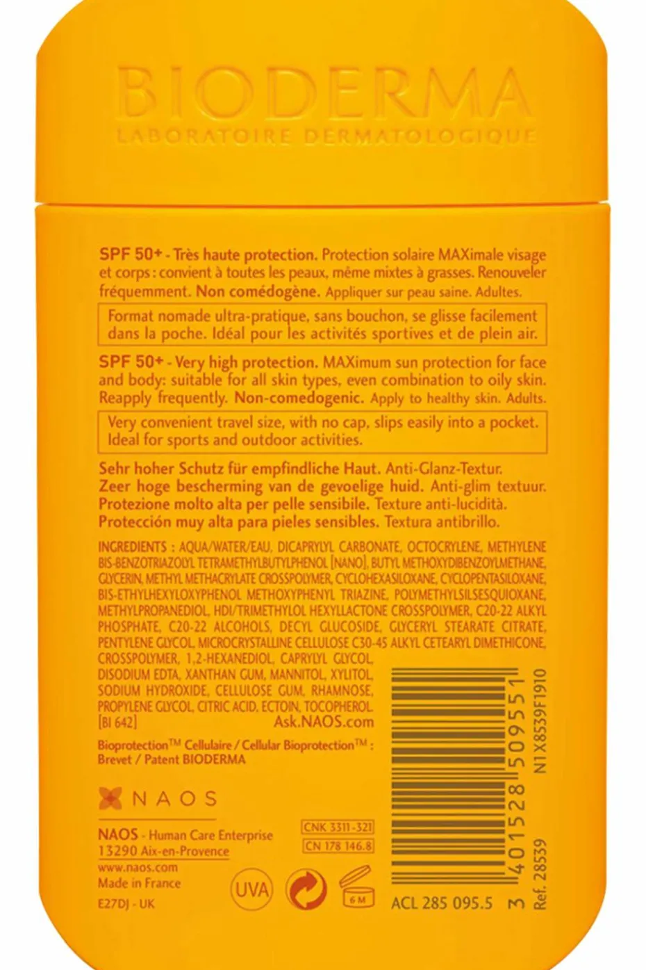 Photoderm MAX SPF50+ Aquafluide Pocket, très haute protection pour les peaux sensibles, texture anti-brillance et résistant à l’eau. Protection solaire MAXimale visage et corps.