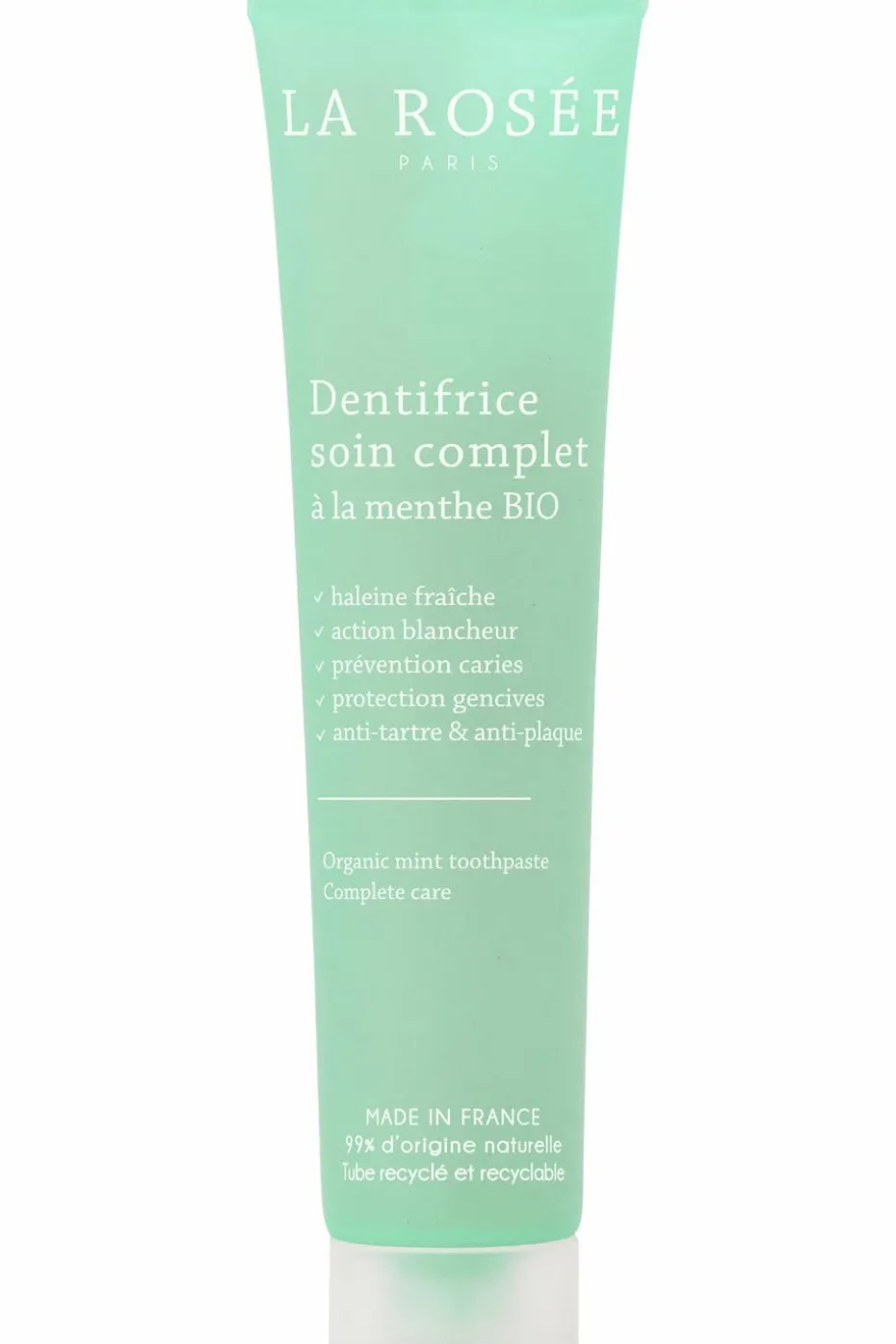 Le dentifrice à la menthe BIO nettoie en douceur et offre un soin complet pour des dents fortes et saines !