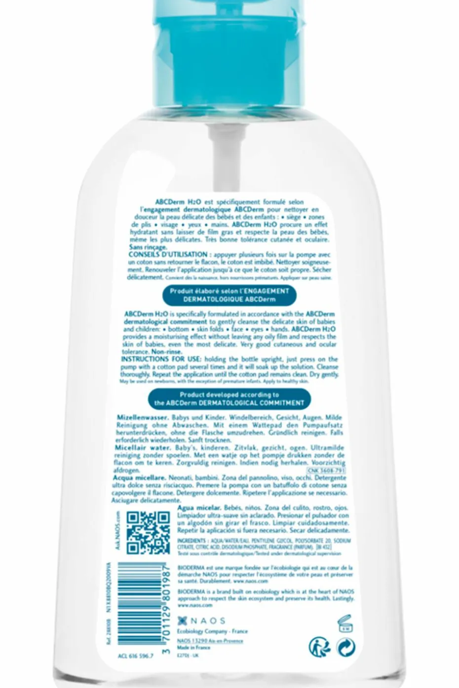 ABCDerm H2O est formulé selon l’engagement dermatologique ABCDerm afin de respecter la peau délicate des bébés et des enfants en bas âge.