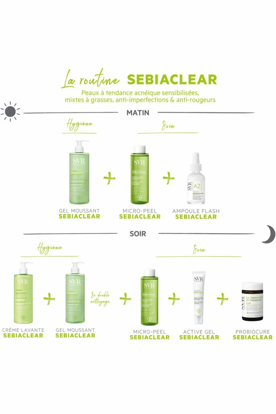 Pour les peaux sensibles mixtes à grasses, à tendance acnéique. Pores, boutons, points noirs. Visage, Adulte.
