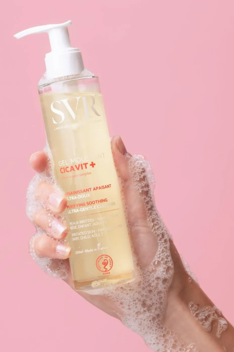 CICAVIT+ Gel Moussant Assainissant Apaisant Ultra-doux permet de nettoyer les zones cutanées irritées tout en respectant l’équilibre du microbiote cutané et le film hydrolipidique de la peau.