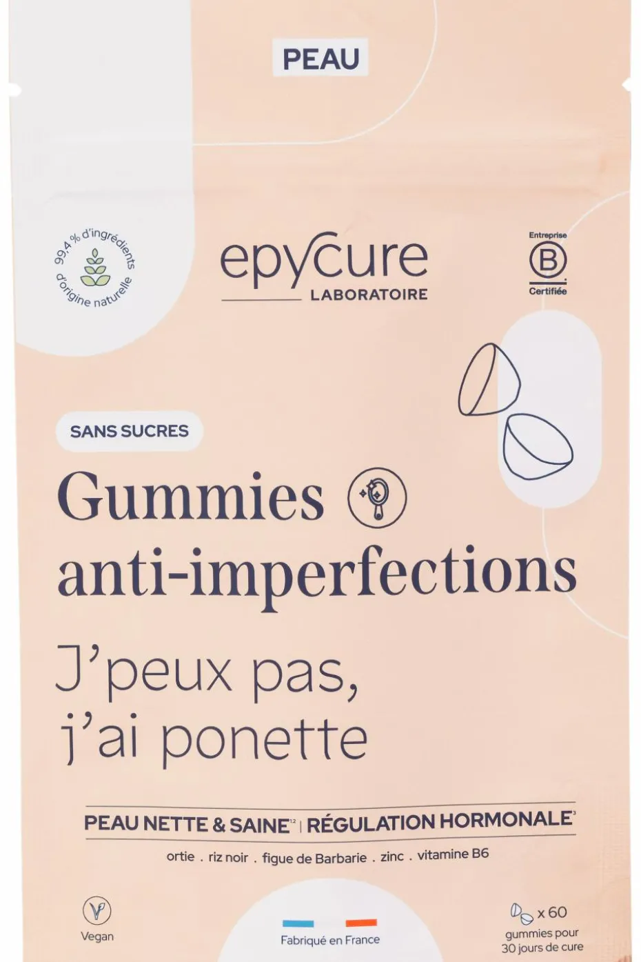 Boutons inflammés, peau qui brille ou rougeurs… ces signes sont souvent liés à des déséquilibres hormonaux qui dérèglent les glandes sébacées et bouleversent l’équilibre naturel de la peau. Les Gummies anti-imperfections, grâce à Actrisave®, un complexe unique étudié sur l’acné, agissent de l’intérieur pour soutenir l’équilibre hormonal, réguler la production de sébum et limiter les inflammations associées, pour une peau visiblement plus nette et apaisée.