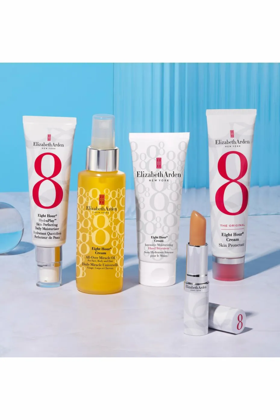 NOUVEAUTÉ de la gamme iconique Eight Hour® Cream, HydraPlay™, le soin hydratant miracle 8-en-1 qui hydrate, illumine, régule l’excès de sébum, resserre les pores, prépare et sublime la peau.