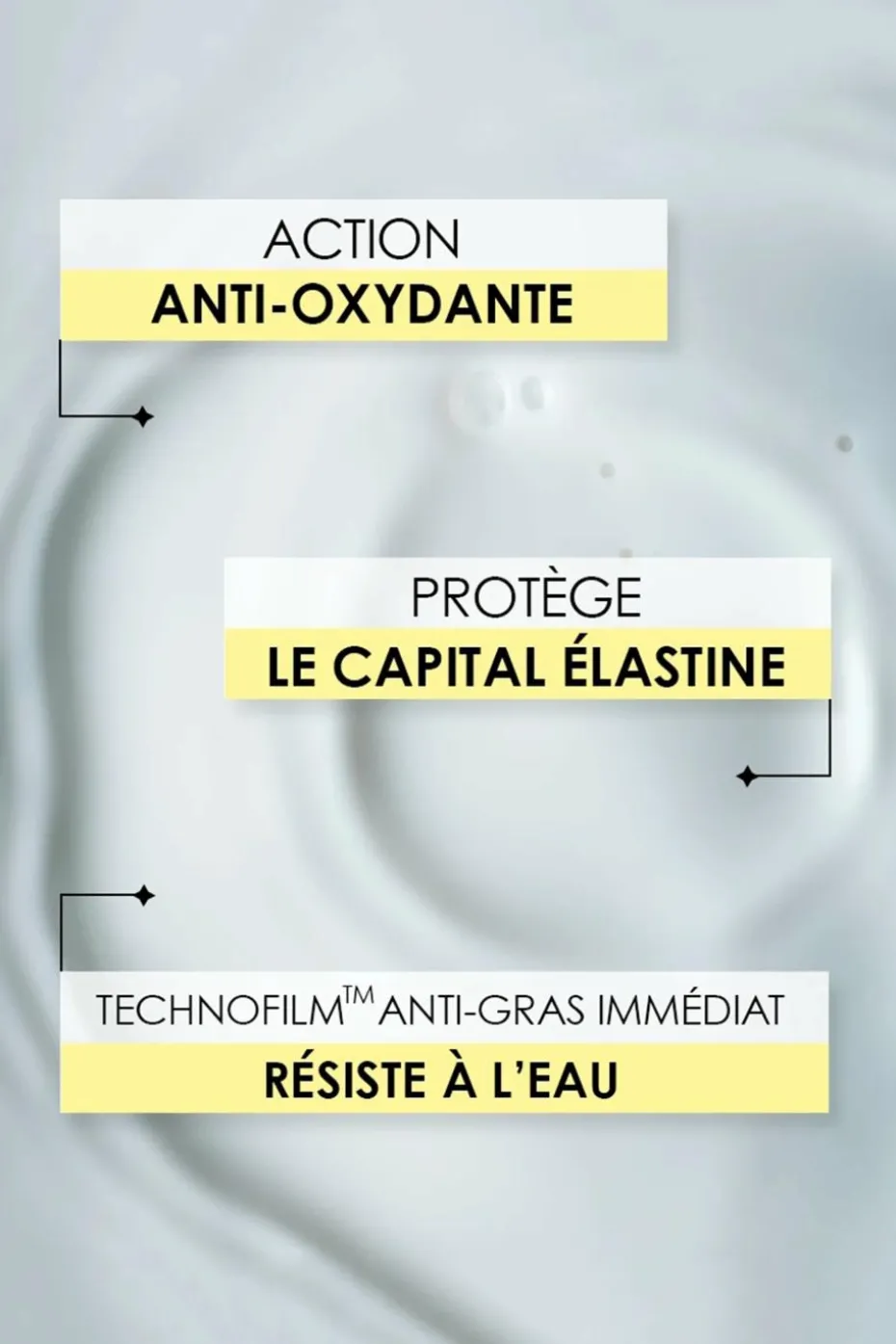 INNOVATION AU-DELA de la simple protection UVA UVB : combinaison inédite à large spectre composée de 4 filtres UV organiques, de protecteurs végétaux anti-oxydants aux propriétés anti-lumière bleue (2 extraits d’algues rouges + pongamia) afin de lutter contre la dégradation de l’élastine de la peau et du veillissement cutané.