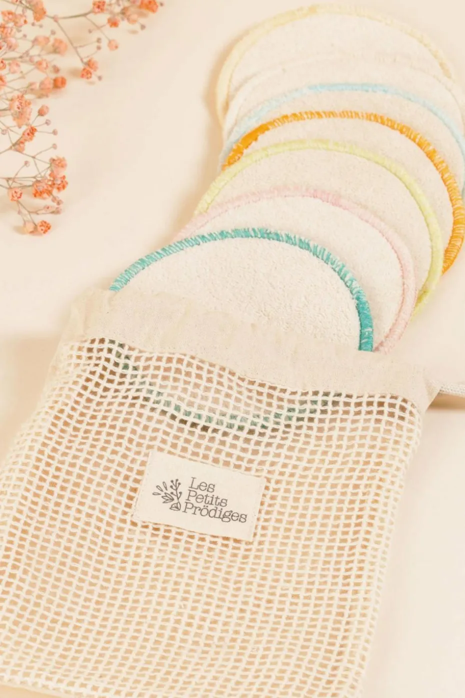 Pour une salle de bain zéro déchet, Les Petits Prödiges vous proposent ces cotons lavables et réutilisables : 7 jolis disques colorés de 10 cm pour un maximum de confort et être tranquille toute la semaine. Ils sont biphasés et les 2 faces (1 face serviette et 1 face micro-fibres) vous assurent un nettoyage en profondeur ou en douceur selon vos envies.