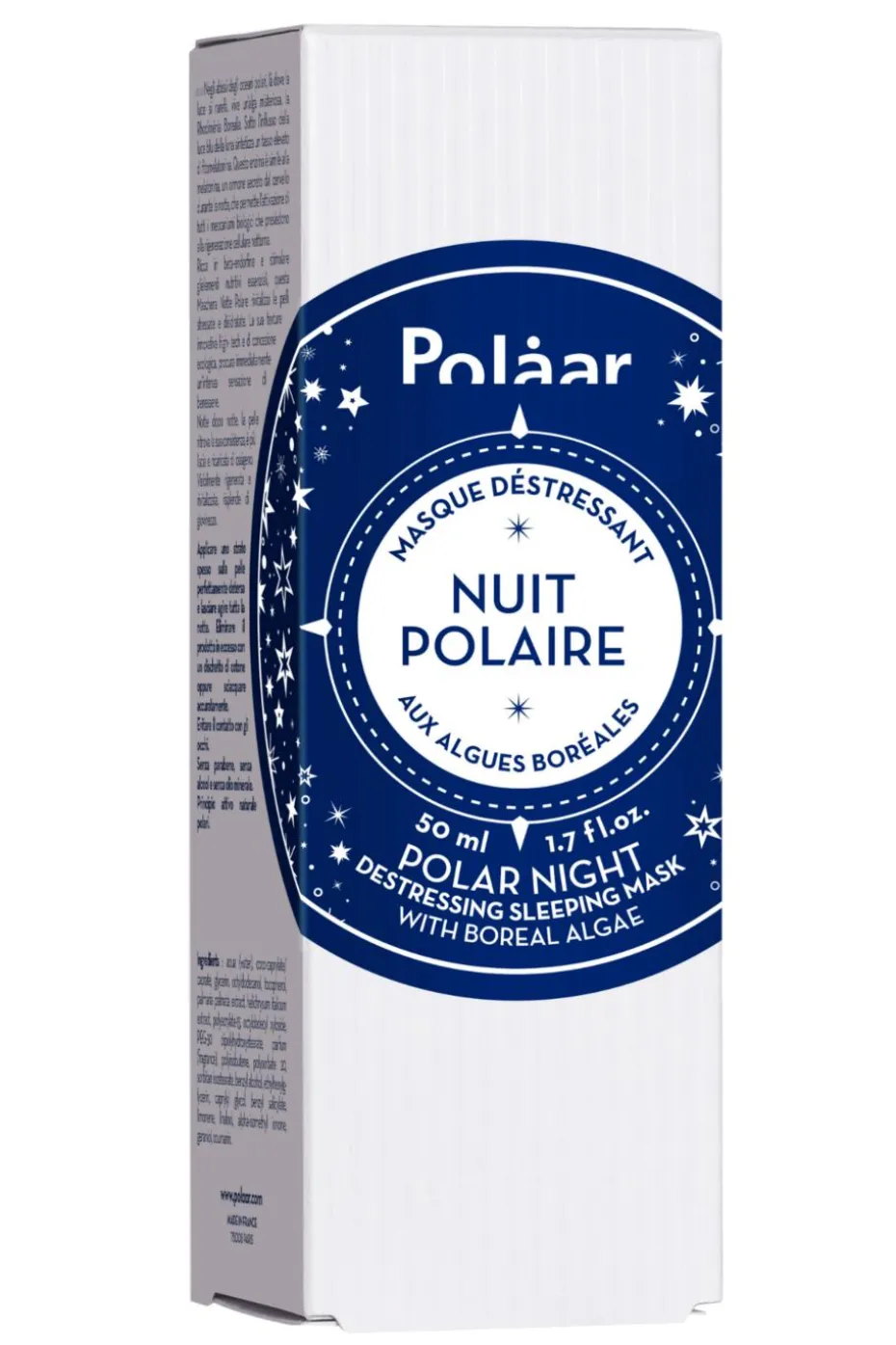 Formulé à base d’Algues Boréales qui puisent leur force dans les abysses des océans polaires, et en Acide Hyaluronique renforcé par du Silicium, ce masque de nuit agit sur les 4 dimensions de la peau parfaite : il hydrate et repulpe intensément, lisse rides et ridules, régule sébum et imperfections, ravive l’éclat.