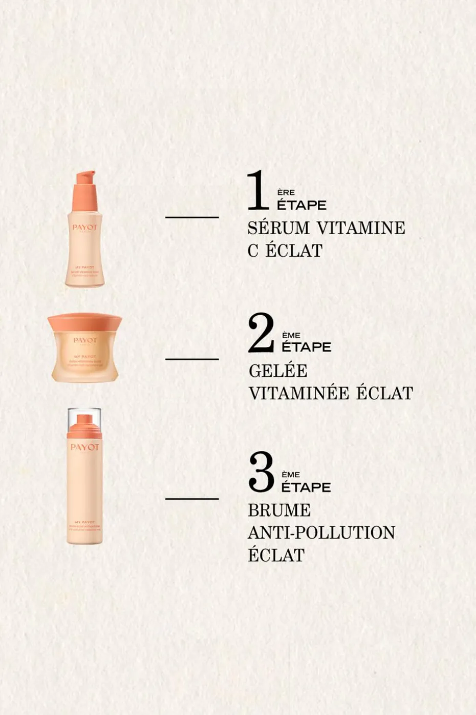 Hautement concentré en vitamine C pure, My Payot Sérum Vitaminé Éclat offre un coup d’éclat aux peaux ternes et fatiguées, unifie et affine le grain de peau.