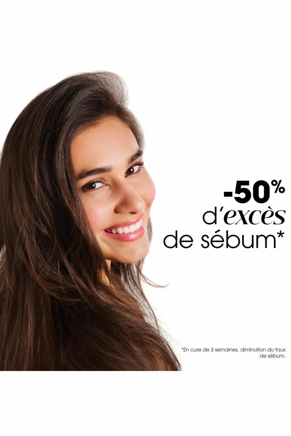 *Cheveux moins gras : 91 % de satisfaction – test de satisfaction – 33 personnes après 28 jours d’utilisation.