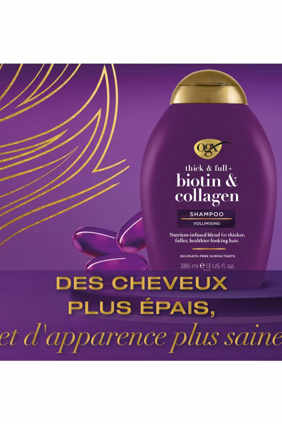 La formule repulpante riche en nutriments est infusée de vitamine B7 biotine, de collagène et de protéines de blé, et aide à maintenir la croissance pour des cheveux d’apparence saine et plus épais au toucher.